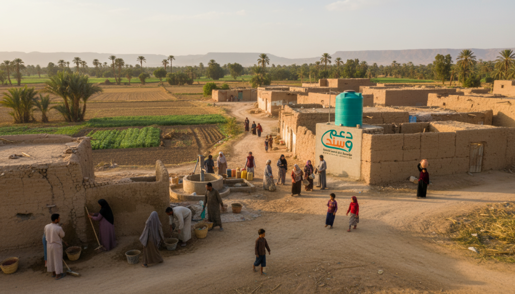 مشروع خزانات نجع حمادي بمحافظة قنا والعمل على توصيل مياه الشرب النقية للمساكن في القرى والنجوع الأشد احتياجاً التي تفتقر للبنية التحتية الأساسية، لضمان حياة صحية وبيئة خالية من الأوبئة.