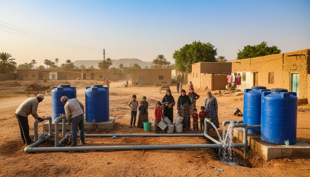 لتكون آمنة وصحية وميسرة التركيز على المناطق النائية والتي لديها فقر مائي كقاعدة لانطلاق التنمية الاقتصادية والاجتماعية.